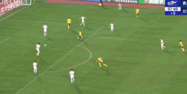 比赛第72分钟,何宇鹏替补出场。全场伤停补时阶段,国安队在禁区内出现配合失误,何宇鹏犯规送点。